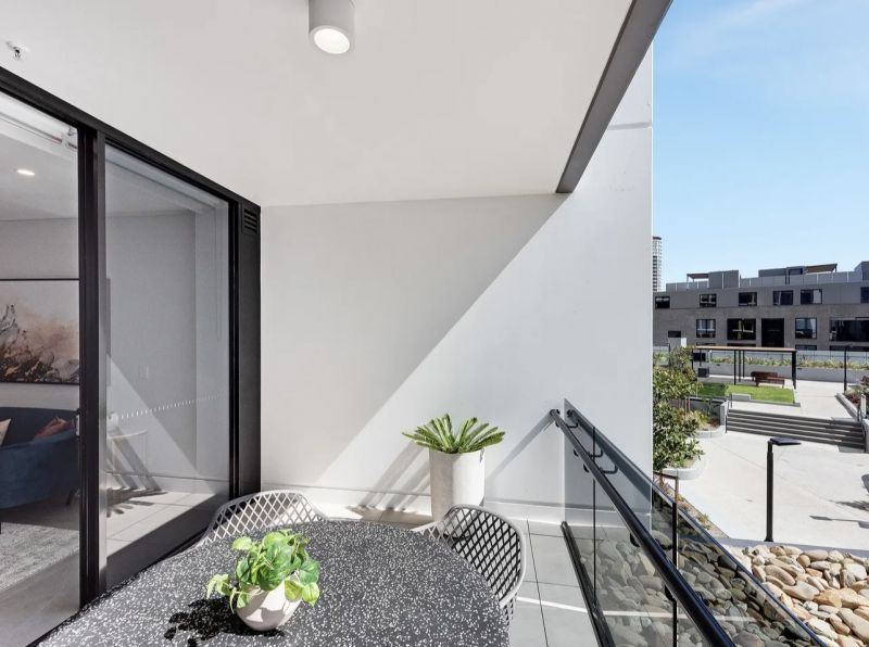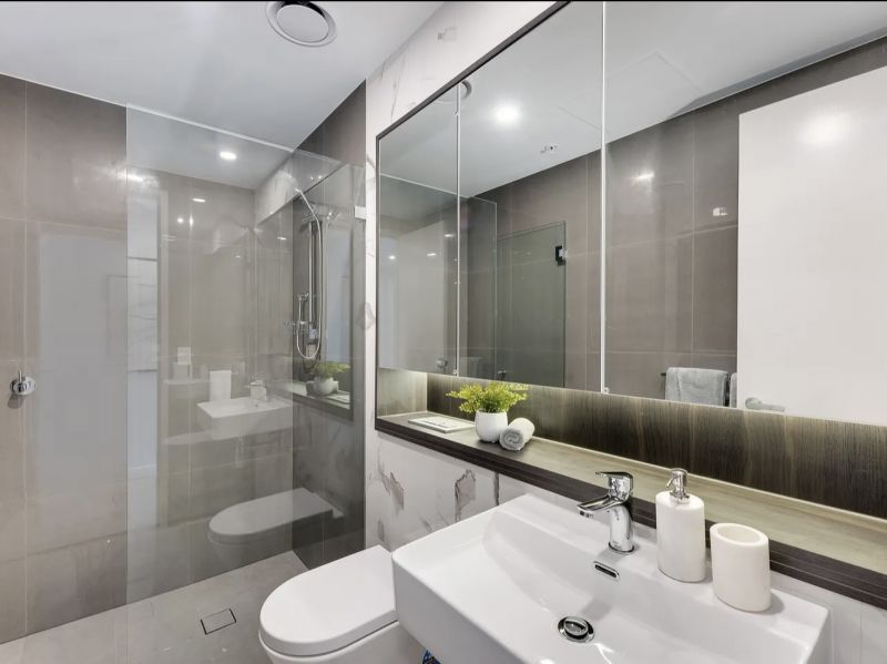 The well-sized bedrooms are enhanced by built-in robes, with the main bedroom offering the luxury of an ensuite bathroom. Both bedrooms enjoy direct access to the balcony, providing an inviting outdoor retreat. The residence is further distinguished by its elegant and modern bathrooms.